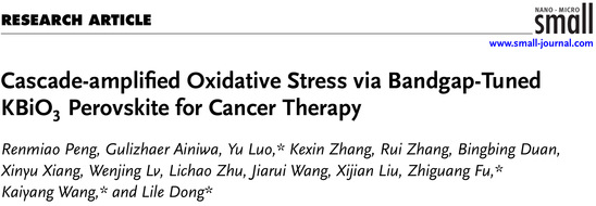 近日,化学化工学院罗宇教授指导硕士研究生朱礼超、彭仁苗分别在学术期刊《Advanced Science》(中科院一区Top,影响因子14.3)、《Small》(中科院二区,影响因子13.0)上发表了题为“High-efficiency Carriers’ Separation Strategy Based Ultrasmall-Bandgap CuWO4 Sono-enhances GSH Antagonism for Cuproptosis Cascade Immunotherapy”“Cascade-amplified Oxidative Stress via Bandgap-Tuned KBiO3 Perovskite for Cancer Therapy”的研究论文。